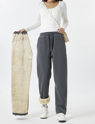 Mujer Pantalones Activo Moda Casual Longitud total Media cintura Color sólido Plano Correa Bolsillo Cintura elástica Mantiene abrigado Confortable Microelástico Exterior Trabajo Calle Gris oscuro