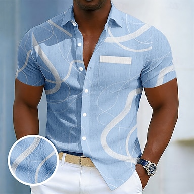 Hombre Geométrico Olas Abotonar la camisa Camisa arrugada Camisa de sirsaca Manga Corta Moda informal Diario vacaciones en la playa Verano Primavera Cuello Vuelto Impresión 3D Camisa con textura de