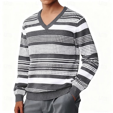 Hombre Suéter de punto Estriado Tejer Tops regulares De Punto Rayas Escote en Pico Moda Básico Vacaciones Ropa Cotidiana Ropa Otoño Invierno Gris S M L