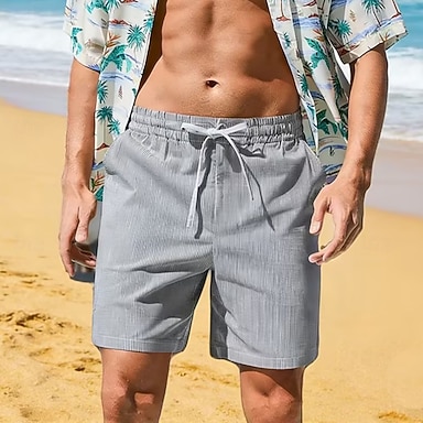 Hombre Pantalón corto Pantalones cortos de lino Pantalones cortos de verano Pantalones cortos de playa Correa Cintura elástica Raya Tiras verticales Comodidad Transpirable Corto Diario Exterior Playa