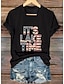Mujer Camiseta Estampado Graphic Letra Vintage Elegante Clásico Manga Corta Cuello Barco Tops regulares Diario Azul Piscina Negro Blanco Verde Trébol Gris Verano Primavera