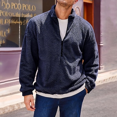 Hombre Sudadera Sherpa difuso Sudadera con capucha y cremallera de un cuarto Negro Azul Marino Verde Trébol Caqui Gris Con Capucha Plano Bolsillo Deporte Diario Festivos Ropa de calle Fresco Casual