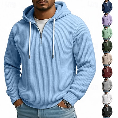 Hombre Sudadera Pana Pull-over Sudadera con capucha y cremallera de un cuarto Rojo tinto Negro Blanco Verde Claro Azul Marino Con Capucha Plano Cerrar Con Texturas Casual Diario Deporte Poliéster