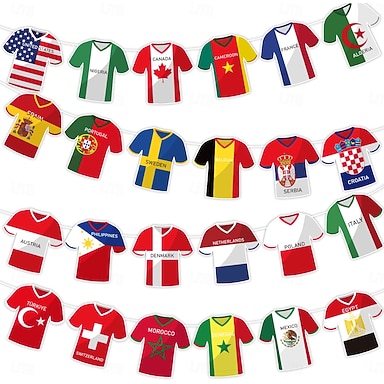 Guirnalda de banderas de camisetas de la Copa Mundial de Fútbol 2026, 49 piezas, banderas internacionales de países, artículos para fiestas temáticas deportivas, eventos y celebraciones al aire libre.