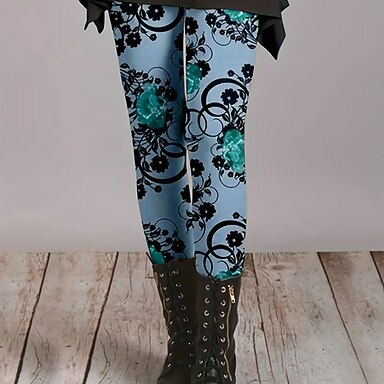 Mujer Polainas Vacaciones Vintage Moda Longitud total Alta cintura Floral Graphic Estampado Mantiene abrigado Suave Transpirable Elástico Diario Exterior Vacaciones Azul Piscina Rosa Gris Oscuro