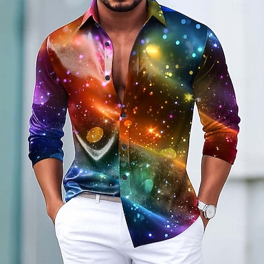 Navidad Hombre Brillo chispeante Feliz año nuevo Luz de Navidad Camisa Camisa de raso Camisa para Vestido Manga Larga Moda informal Fiesta Festivos Verano Primavera Otoño Cuello Vuelto Impresión 3D