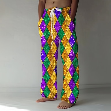 Mardi Gras Hombre Rombo Carnaval Pantalones casuales Pantalones Pantalones anchos Media cintura Moda informal Fiesta Festivos Cintura elástica con cordón Pantalones tipo lino con bolsillos Primavera