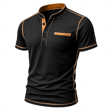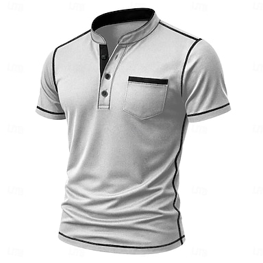 Hombre Camiseta Henley Shirt Tee Camisa manga corta Manga Corta Henley Verano Primavera Retazos Moda Design Básico Botones Bolsillo Vacaciones Calle Noche Negro Blanco Azul Marino Camiseta superior