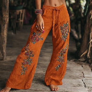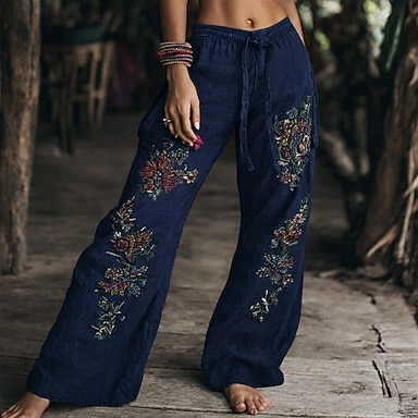 Mujer Perneras anchas Pantalones Pantalones palazzo Moda Boho Longitud total Alta cintura Flor Correa Cintura elástica Estampado Transpirabilidad Cómodo Calle Ropa Cotidiana Noche Azul Piscina Verde