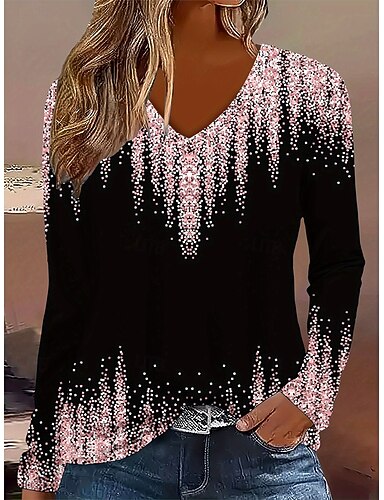 Mujer Camiseta Estampado Ombre Graphic Abstracto Vintage Elegante Clásico Manga Larga Escote en Pico Tops regulares Diario Rosa Primavera Otoño Invierno