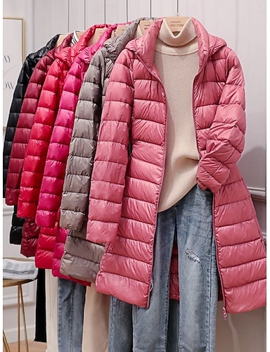 Mujer Abajo Anorak Cómodo Transpirable Cremallera Bolsillo Casual Plano Vacaciones Calle Casual Ropa Cotidiana Cremallera Largo Escote Chino Ajuste regular Manga Larga Ropa de calle Negro Rosa Vino