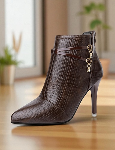 Botines marrones de tacón alto para mujer con detalle de llavero: un estilo elegante y chic, perfectos para la oficina, ocasiones formales y eventos nocturnos.