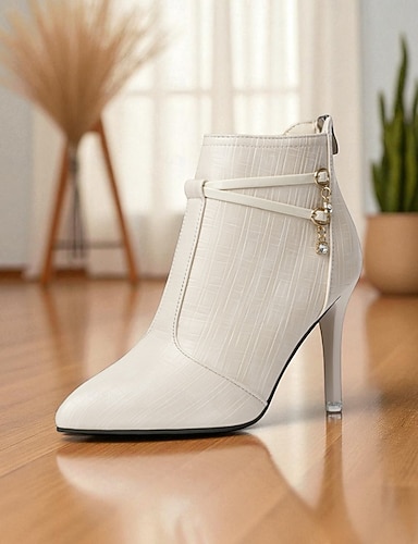 Botines rojos de piel sintética para mujer con tacón de aguja y dije de diamantes de imitación: elegantes botines de fiesta para otoño, invierno y citas nocturnas.