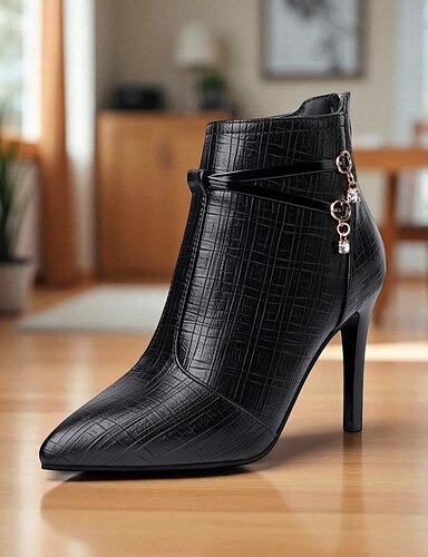 Botines negros de tacón alto con estampado de cocodrilo para mujer – elegante punta afilada, diseño sofisticado para eventos nocturnos, fiestas y salidas de oficina