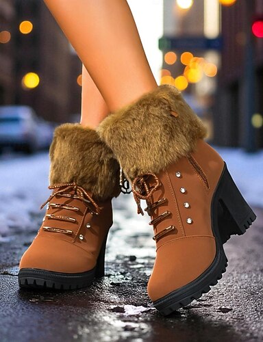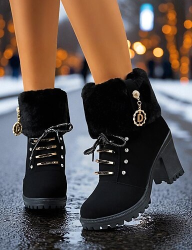 Botines de invierno para mujer con forro de piel sintética y tacón grueso: cómodos y elegantes, ideales para el frío, el día a día y las vacaciones de invierno.