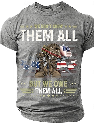 Día de los Caídos No los conocemos a todos, pero les debemos a todos Botas de combate para hombre Placas de identificación Bandera estadounidense Camiseta gráfica patriótica Camiseta vintage