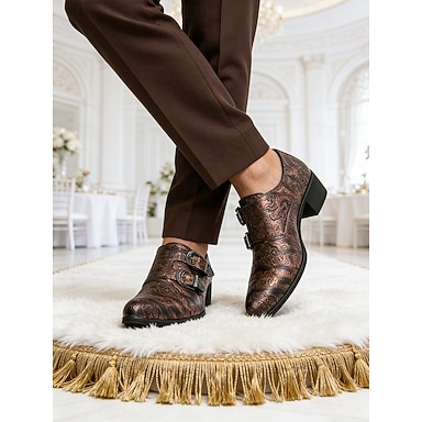 Zapatos de vestir para hombre, de piel sintética marrón con doble hebilla: elegantes zapatos para bodas y ocasiones formales.