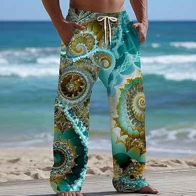 Hombre Diseño Geométrico Arte abstracto Remolino Pantalones Pantalones anchos Pantalones casuales Media cintura Moda Hogar Exterior Vacaciones Cintura elástica con cordón Pantalones tipo lino con