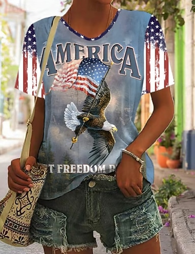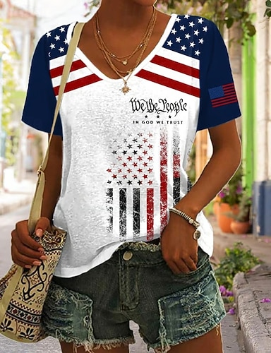 día de la independencia americana Mujer Mini vestido Vestido estilo camiseta Vestido de una línea Vacaciones Casual Diario Ajuste regular Graphic Bandera Manga Corta Escote en Pico Rojo Azul Real