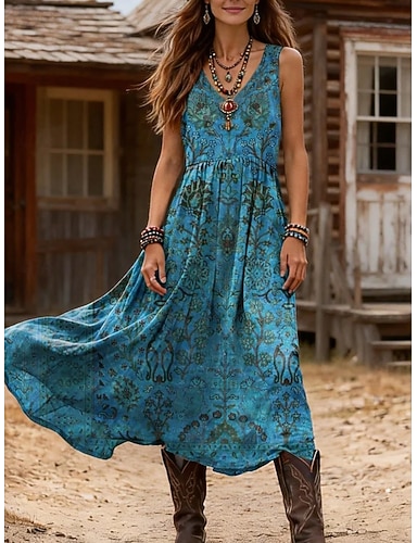 Mujer Vestido Midi Vestido de una línea Casual Diario Ajuste regular Graphic Cachemir Sin Mangas Escote en U Azul Piscina Rosa Morado Verde Trébol Verano Primavera