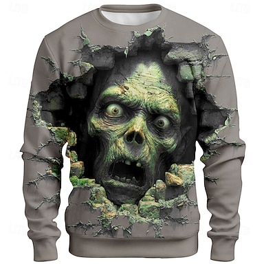 Hombre Zombis 3D Sudadera Punk Fiesta Gótico Manga Larga Cuello Barco Vacaciones Verde Claro Verde Trébol Gris Cuello redondo 3D Todas las Temporadas Diseñador S M L XL XXL XXXL