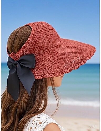 Sombrero de pescador con lazo para mujer: sombrero ligero de poliéster de ala ancha para el sol, ideal para viajes al aire libre, playa y uso informal de verano.