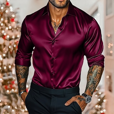 Hombre Camisa Camisa de raso Camisa casual Abotonar la camisa Plano Boda Vacaciones Bleu Ciel Negro Blanco Burdeos Manga Larga Cuello Invierno Primavera & Otoño Ropa