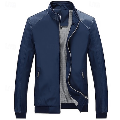 Hombre Chaqueta casual Chaqueta de universidad Vacaciones Diario Mantiene abrigado Bolsillo Primavera Otoño Rayas Moda Clásico Escote Chino Regular Negro Rojo Azul Marino Azul Real Gris Ligero
