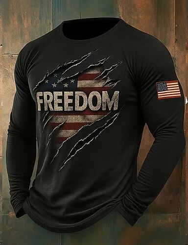 Hombre Letra Bandera estadounidense camiseta Camiseta superior Manga Larga Camiseta Impresión 3D Cuello Barco Camisa Moda Design Casual Vacaciones Diario Festivos Negro Todas las Temporadas Ropa S M