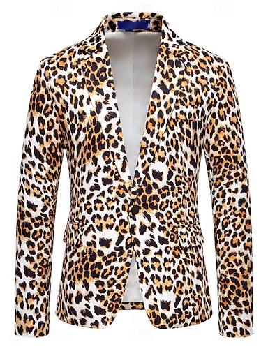 Hombre chaqueta Casual Fiesta Rendimiento Bolsillo Animales Atrevido Todas las Temporadas POLY Leopardo Estampado Leopardo Bolsillo Estampados de Leopardo Moda Recto 1 botón Chaqueta de sport Blanco