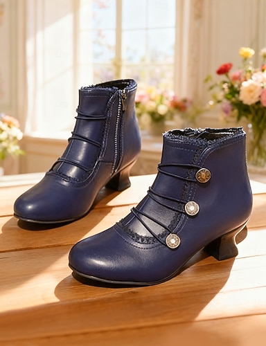 Botines victorianos vintage marrones con cordones para mujer, detalles de botones y tacón medio para cosplay, recreaciones históricas y uso diario