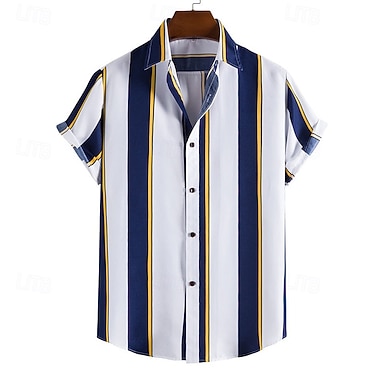 Hombre Camisa Camisa de verano Camisa casual Camisa de playa Abotonar la camisa Blanco Azul Verde Trébol Gris Manga Corta Tiras verticales Diseño Vacaciones Hawaiano Ropa Poliéster Moda Casual Cómodo