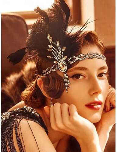 Retro Antiguo Rugido 20s 1920s Diadema de estilo flapper Para la Cabeza Accesorios para el Pelo El gran Gatsby Pluma Disfraz Mujer Navidad Carnaval Mascarada Fiesta temática retro Baile de Charleston