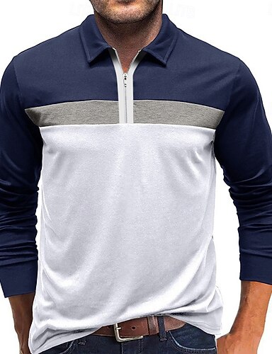 Hombre Polo Camisetas polo Vacaciones Calle Cremallera de un cuarto Manga Larga Moda Básico Bloque de color Retazos Bolsillo Primavera Otoño A Medida Negro Verde Ejército Azul Marino Color Caquí Gris