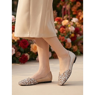 Bailarinas beige con lentejuelas para mujer: cómodas y elegantes para citas diarias y salidas informales.