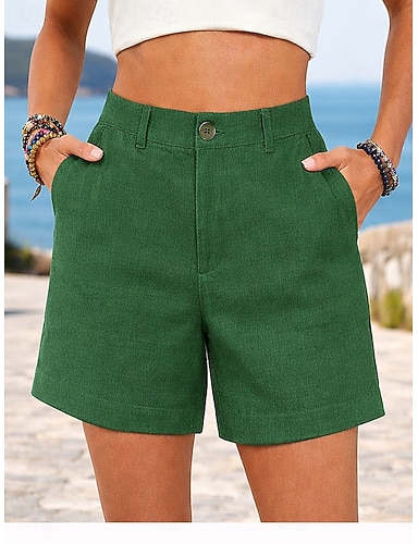 Mujer Lino de algodón sintético Chinos Pantalón corto Pantalones cortos de verano Vacaciones Moda Ropa de calle Corto Alta cintura Plano Bolsillo Confortable Suave Cómodo Rígido Exterior Calle Negro