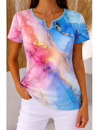 Mujer Camiseta Estampado Graphic Impresión de mármol Vintage Elegante Clásico Manga Corta Cuello con muescas. Tops regulares Diario Fin de semana Azul Piscina Amarillo Rosa Verde Trébol Verano