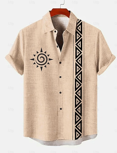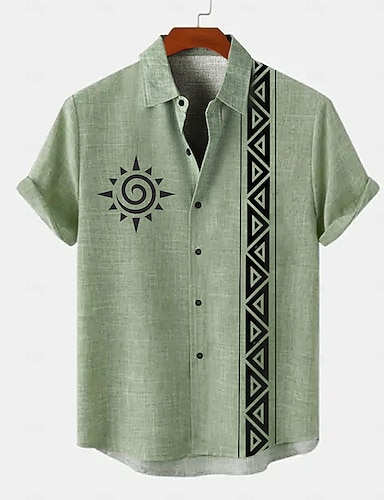 Hombre Sol azteca Camiseta Henley Shirt Manga Corta Impresión 3D Design Étnico Casual Diario Verano Azul Piscina Verde Trébol Caqui Escote en Pico Henley Camiseta Henley