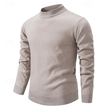 Hombre Suéter de punto Estriado Tejer Tops regulares De Punto Plano Cuello Alto Moda Básico Vacaciones Ropa Cotidiana Ropa Otoño Invierno Color Camello Vino S M L