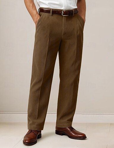 Hombre Pantalones pantalones de traje Pantalones de Pana pantalones Pantalones de traje Bolsillo Plano Comodidad Suave Longitud total Casual Diario Exterior Moda Clásico Negro Caqui Microelástico