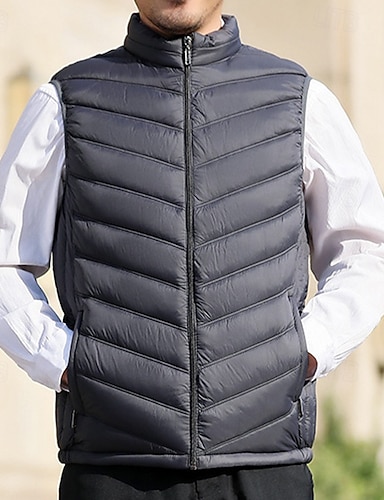Hombre Chaleco acolchado Chaleco Vacaciones Diario Cita Moda Casual Invierno Bolsillo Poliéster Mantiene abrigado Cómodo Color sólido Cremallera Escote Chino Ajuste regular Negro Gris Chaleco