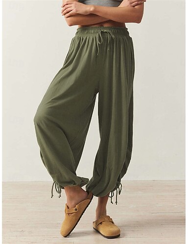 Mujer pantalones Pololos Moda Ropa de calle Longitud total Media cintura Plano Correa Comodidad Al Aire Libre Elástico Diario Vacaciones Calle Negro Verde Ejército Rosa Rojo Primavera Otoño Holgado