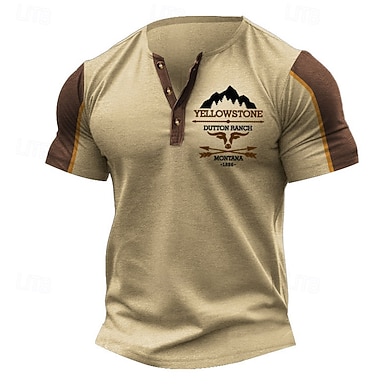 Hombre Camiseta Henley Shirt Tee Camisa manga corta Manga Corta Henley Verano Coche impresión de letras Moda Design Básico Retazos Vacaciones Calle Noche Negro Azul Marino Caqui Camiseta superior