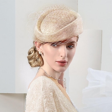 Sombreros Sinamay Sombrero Platillo Sombrero Pastillero Sombrero de velo cóctel Fiesta de Noche Elegante Británico Con Pajarita Tul Celada Sombreros