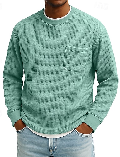 Hombre Camiseta con diseño de gofre Camiseta Camisa henley gofrada Manga Larga Cuello Barco Otoño invierno Todas las Temporadas Color sólido Con Texturas Tradicional / Retro Casual Bolsillo Casual