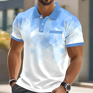 Hombre Geométrico Línea Polo Manga Corta Camisas de polo Camisas con cuello Informal de negocios Exterior Ropa Deportiva Ropa Cotidiana Bolsillo Impresión 3D Botones Verano Azul Piscina En blanco y