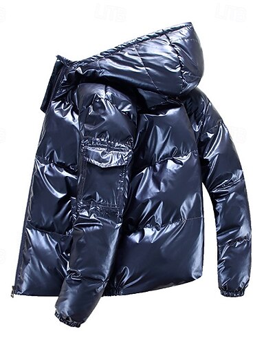 Hombre Abrigo de invierno Chaqueta acolchada Bolsillo Poliéster Vacaciones Ropa Cotidiana Cita Regular Moda Casual Cómodo Mantiene abrigado Invierno Color sólido/liso Plata Negro Azul Real Dorado