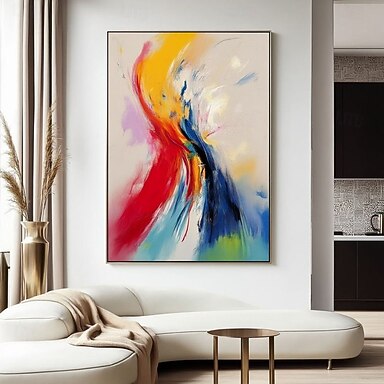 Pintura abstracta colorida 100% lienzo hecho a mano, pintura texturizada, pintura al óleo abstracta acrílica, decoración de pared para sala de estar, oficina, dormitorio, arte de pared, pintura