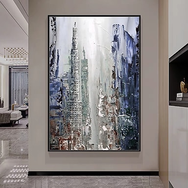 Pintura al óleo hecha a mano lienzo decoración de arte de la pared paisaje urbano abstracto moderno para la decoración del hogar pintura enrollada sin marco sin estirar
