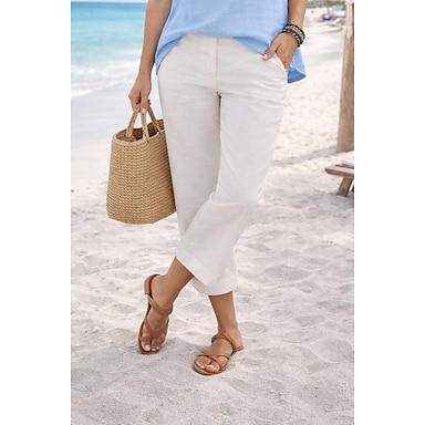 Mujer pantalones cortos capri Algodón Compuesto Chinos Pantalones de verano Moda Medio corto Cintura Media Plano Bolsillos laterales Holgado Comodidad Rígido Casual Diario Azul Piscina Negro Blanco